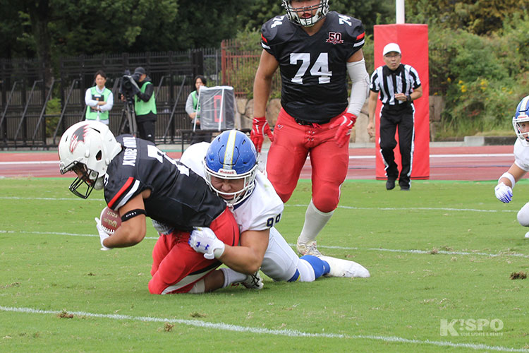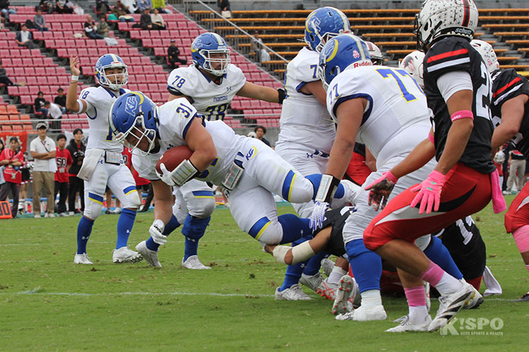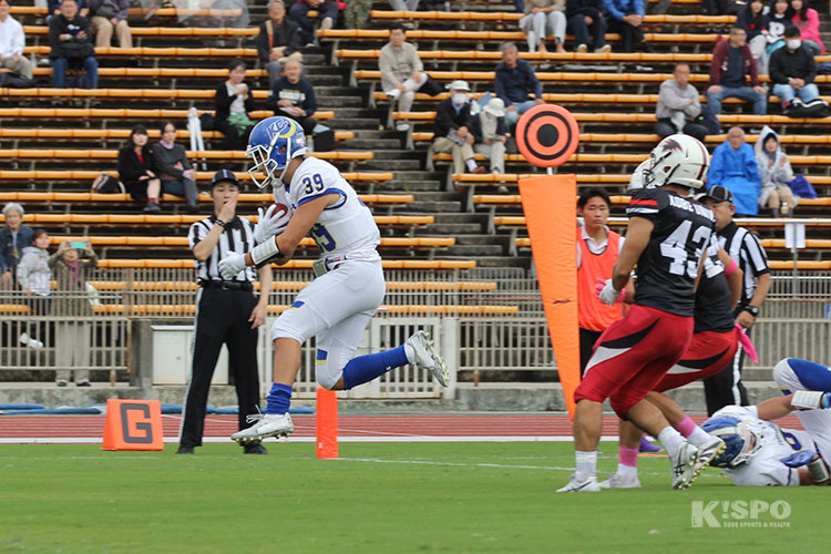 最後は再び永井選手がパワフルなランでゴールに持ち込み、2度目のタッチダウンを奪いました。