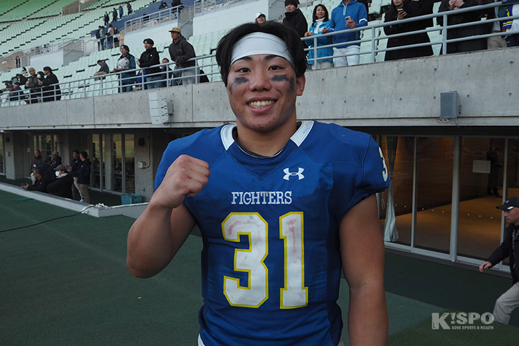 「リーグ戦の関大戦は怪我で出られなくて、試合に引き分けたことで『自分が出られれば…』という思いも重なってとても悔しかったので、今回は完封させることを徹底して試合に臨んだら、自分のところにもチャンスが巡ってきたので、タッチダウンまで決められることができたのは嬉しかったです」