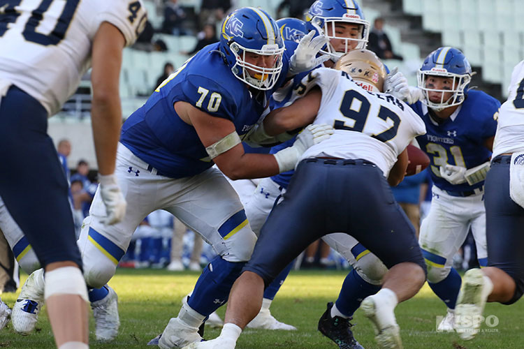 前線で相手ディフェンスラインを押さえるべく立ち向かうはOL(オフェンスライン)。
