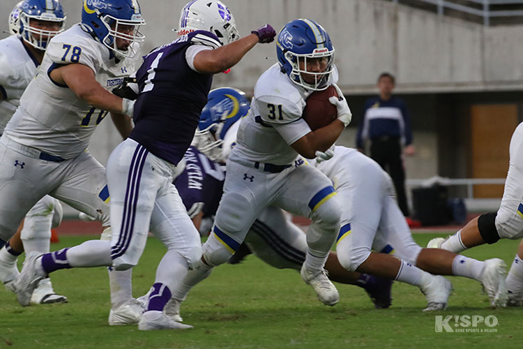 スピードとテクニックを兼ね備えた平野日々輝選手(背番号26)と、パワフルにショートヤードを稼ぐ永井秀選手(背番号31)。