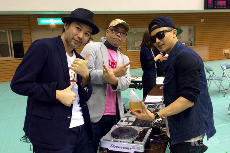 体育館の音響に直接つなぎ、ターンテーブルと、サンプラーと呼ばれる機材を持ち込んで、現場ごとに音の環境をイチから組み立てていく。