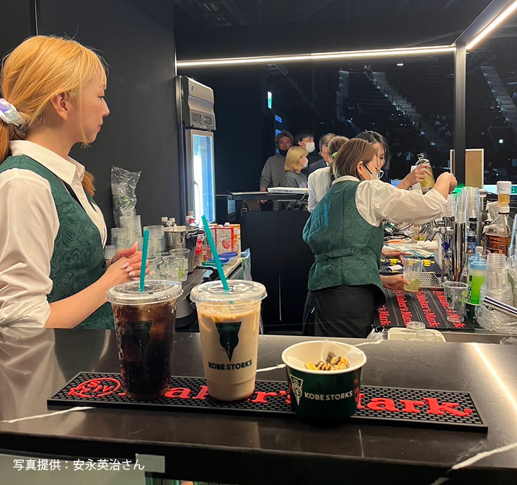 安永さんはいきなり、お店のオーナーでありながら、兵庫ストークスのアリーナDJとして抜擢されます。