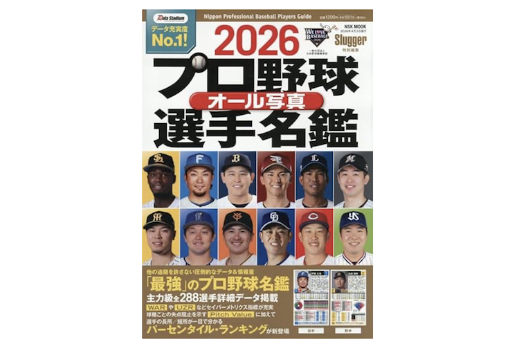 まずは表紙の各球団今年の「顔」だが。オリッは昨年の九里から宮城に変わって「お」と思うも、データを見て納得。ハムだけ昨年と同じ伊藤だが、他はいろいろアップデート。楽天の宗山は同意。だれ?と思った西武の日サロ男は、そうか桑原か。愛也にしたれよと思うも、狂気の狐ダンス男のエスコン降臨は楽しみである。