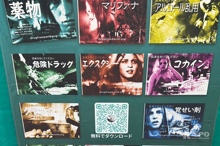 DFWジャパンのブースでは、実際のドラッグ経験者によるインタビュー映像や、世界各地での団体の活動の様子がディスプレイで紹介され、ドラッグに対して正しい知識を得られるようなパネル展示も行われていました。