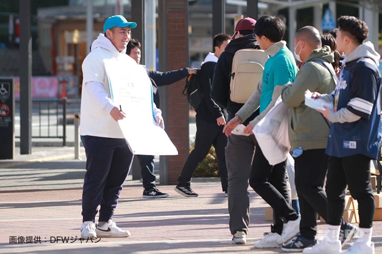 DFWジャパンの活動はアメフト会場に限らず、三宮駅前をはじめ兵庫県内の繁華街でも不定期にキャンペーンを行っています。