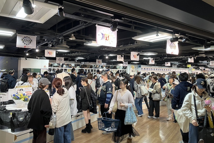 ショップは入場制限がかかるほど人気で、女性ファン多し!典型的な彼女らのスタイル(お気に入り選手ユニ、タオル、キャップ、ペンライト、バッグ、バッグからぶら下がるちゃらちゃらしたもの…)を考えると、いったい球団にいくらお金を落としているのかと感心するばかり。ティーシャツを上着の下に忍ばしているだけの私などは、申し訳ない気持ちに。しかも数年前のT-岡田のん…。